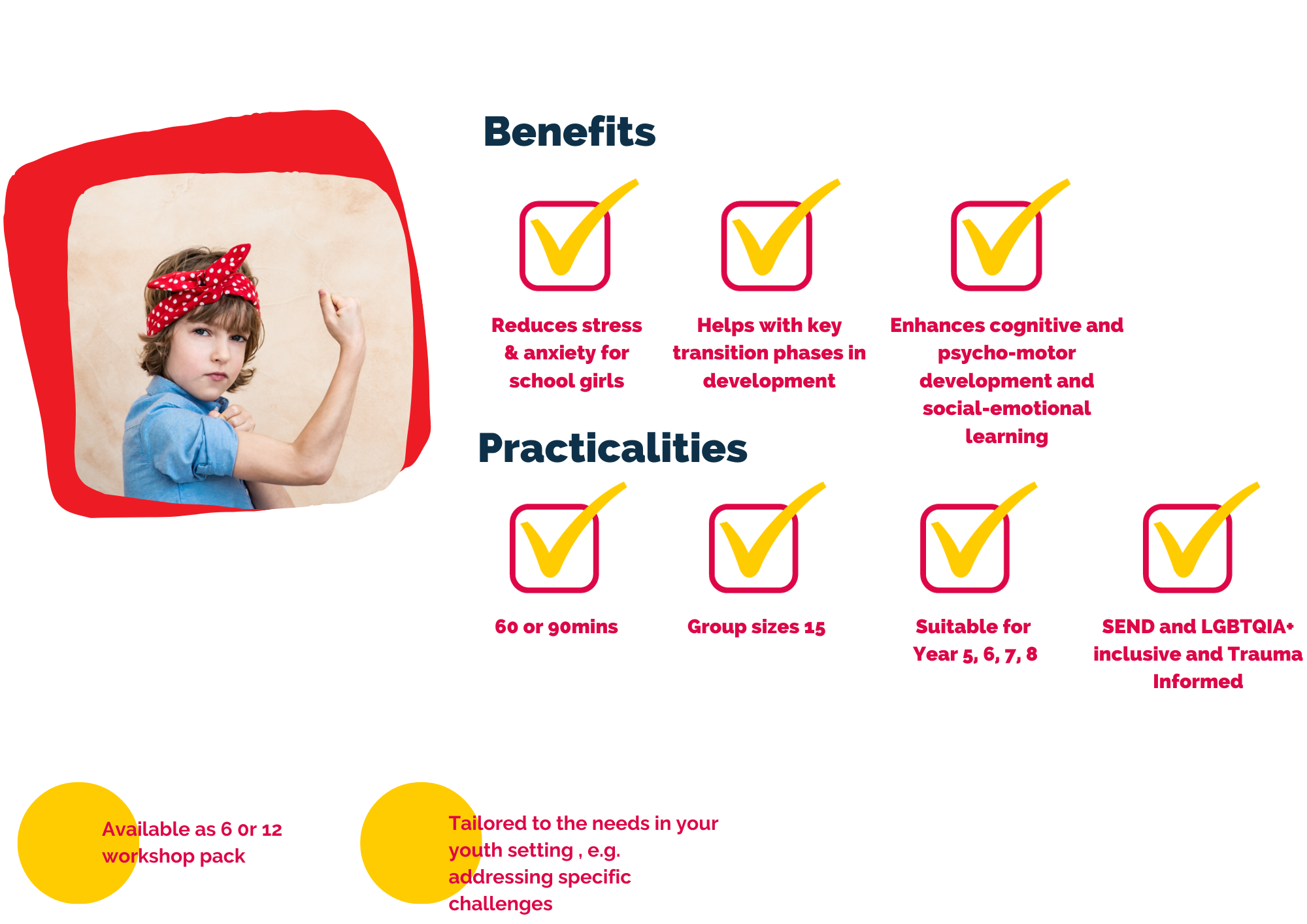 In whatever setting you work with children and young people, we can offer enriching workshops that build body confidence, self esteem, communication skills, whilst fostering social-emotional learning and mental health in pre-puberty and puberty.
